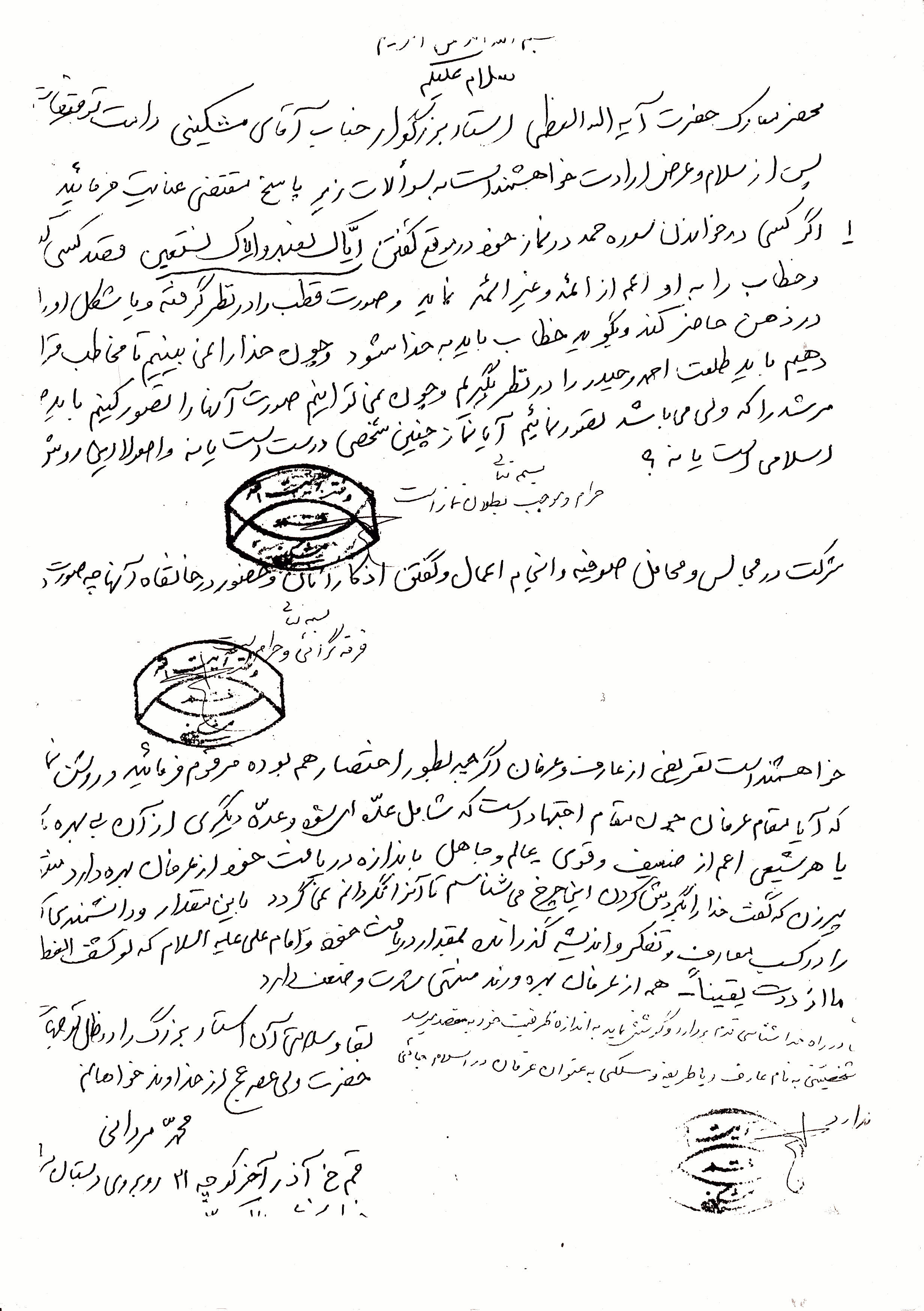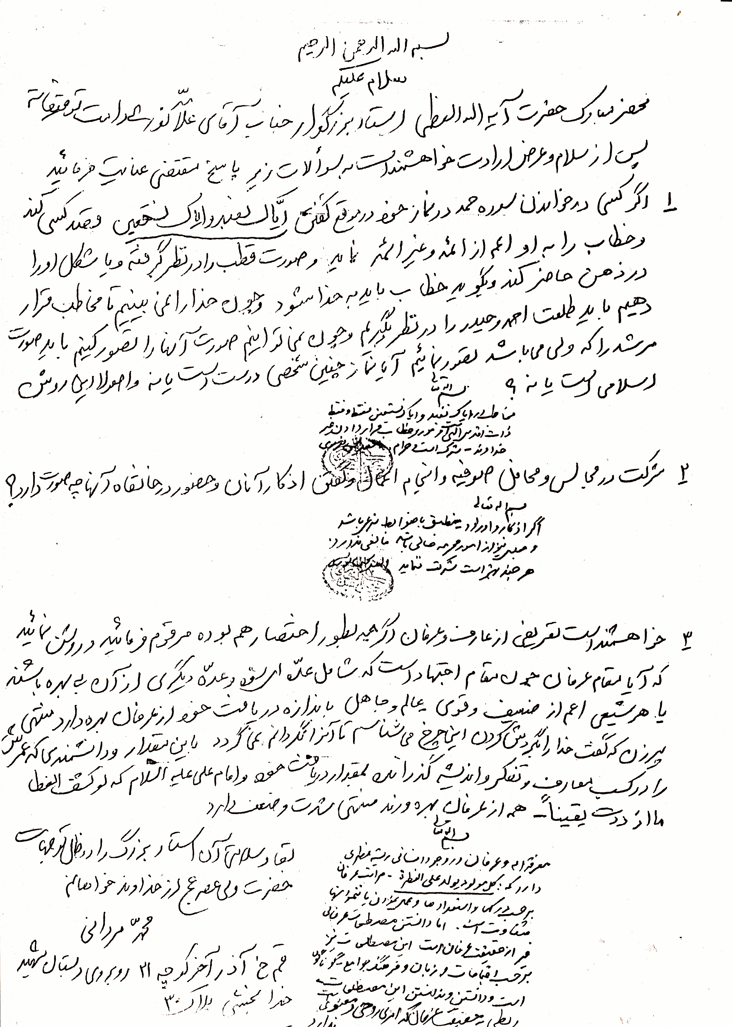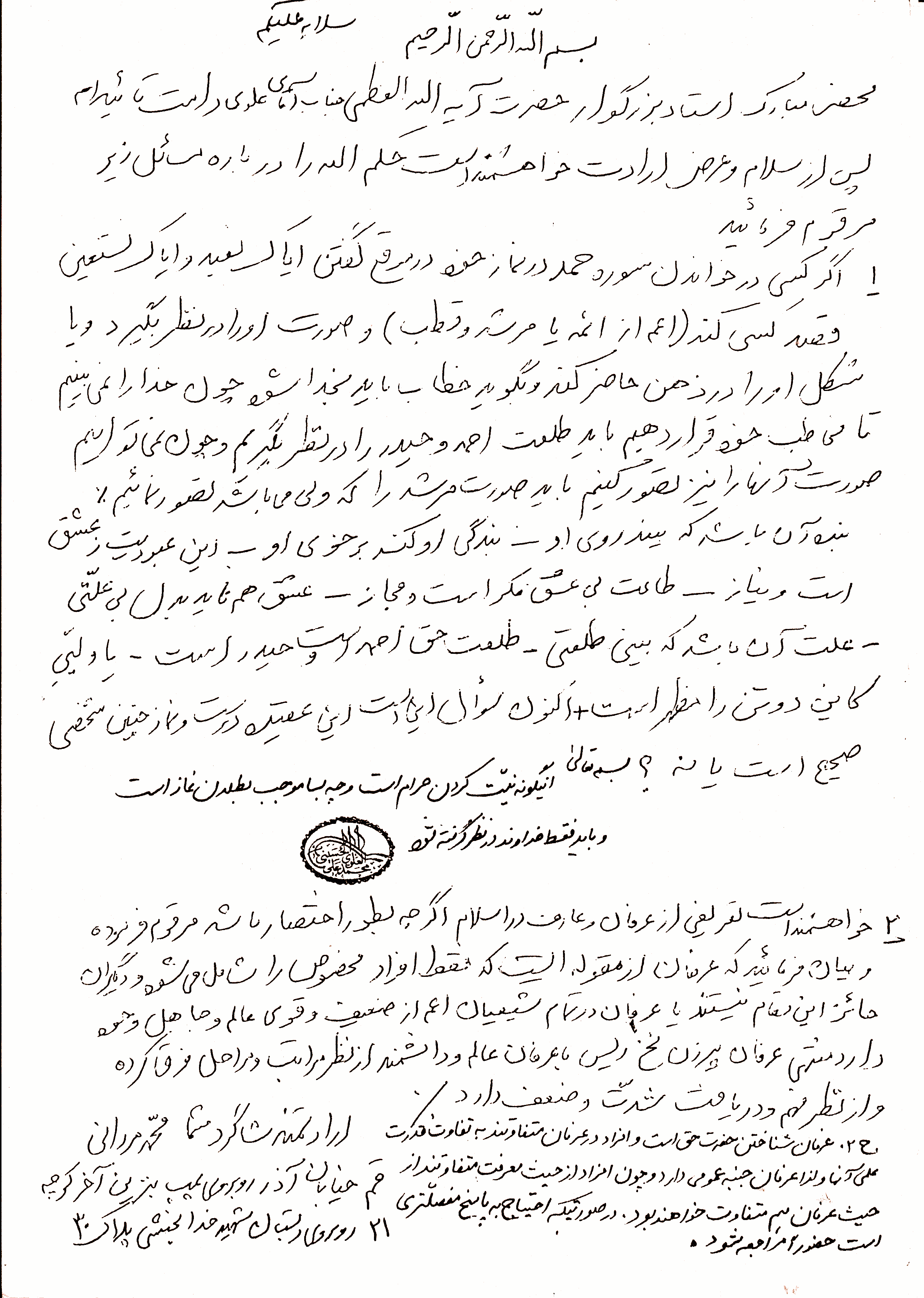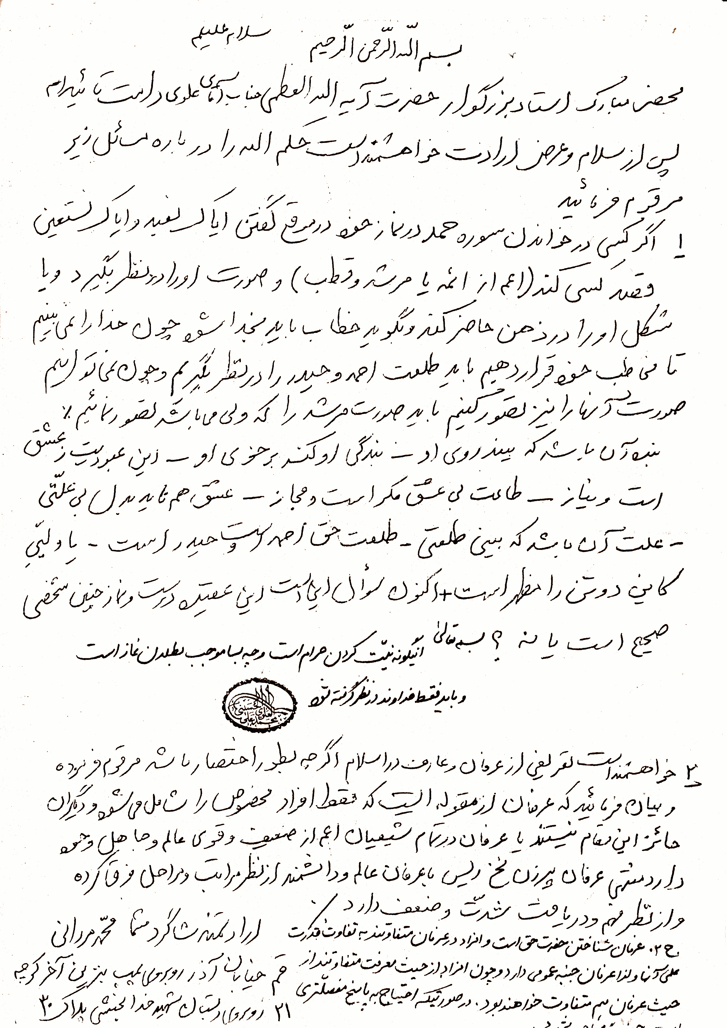 رساله رفع شبهات، مسئله موضوع تمثل صورت امام، ص 21