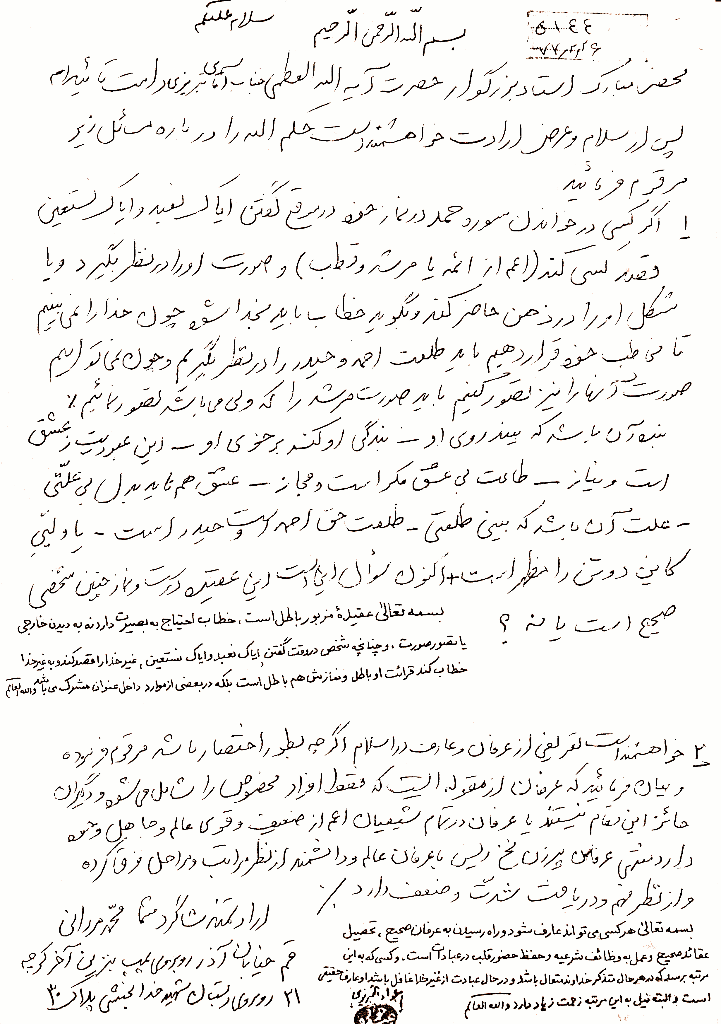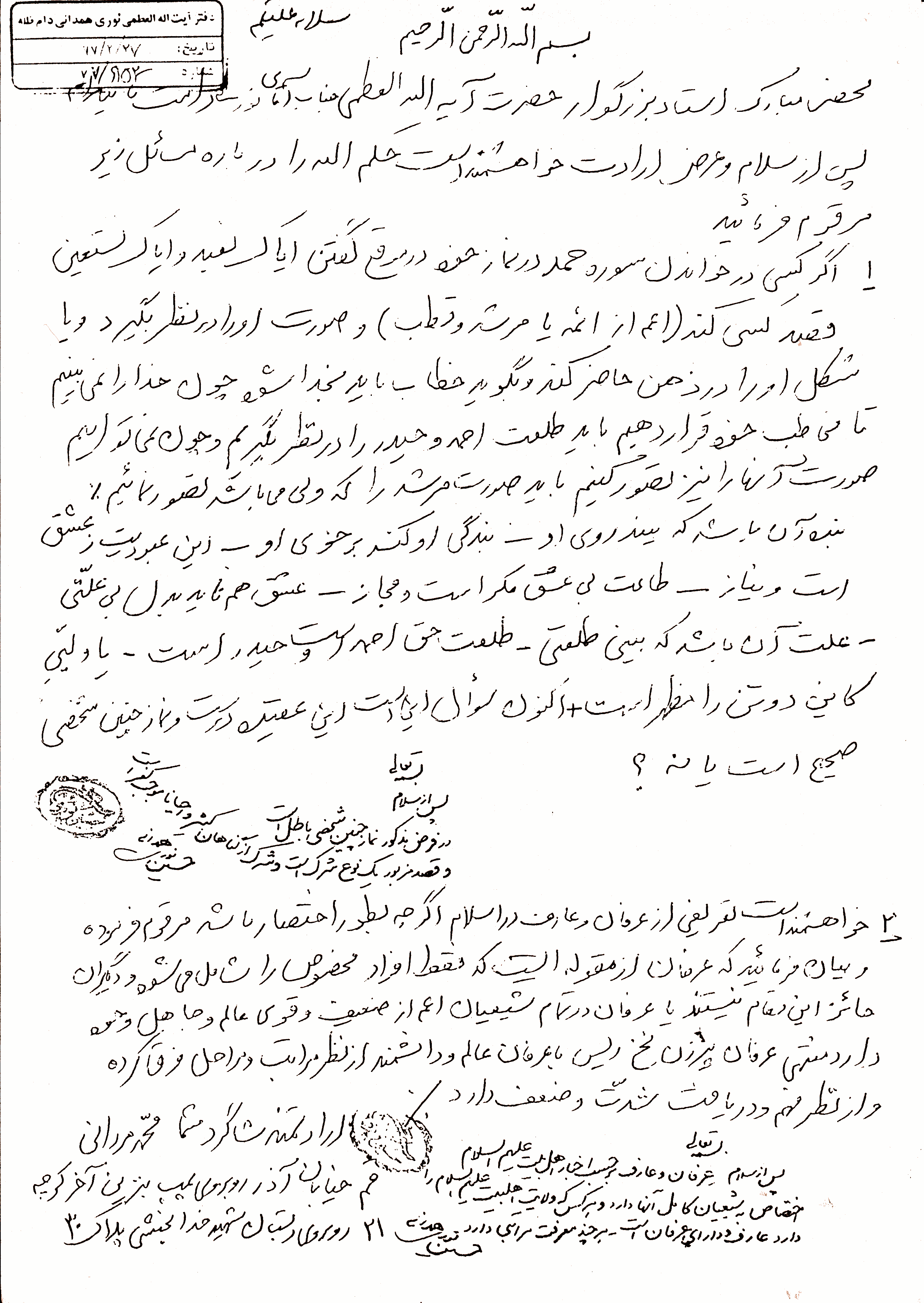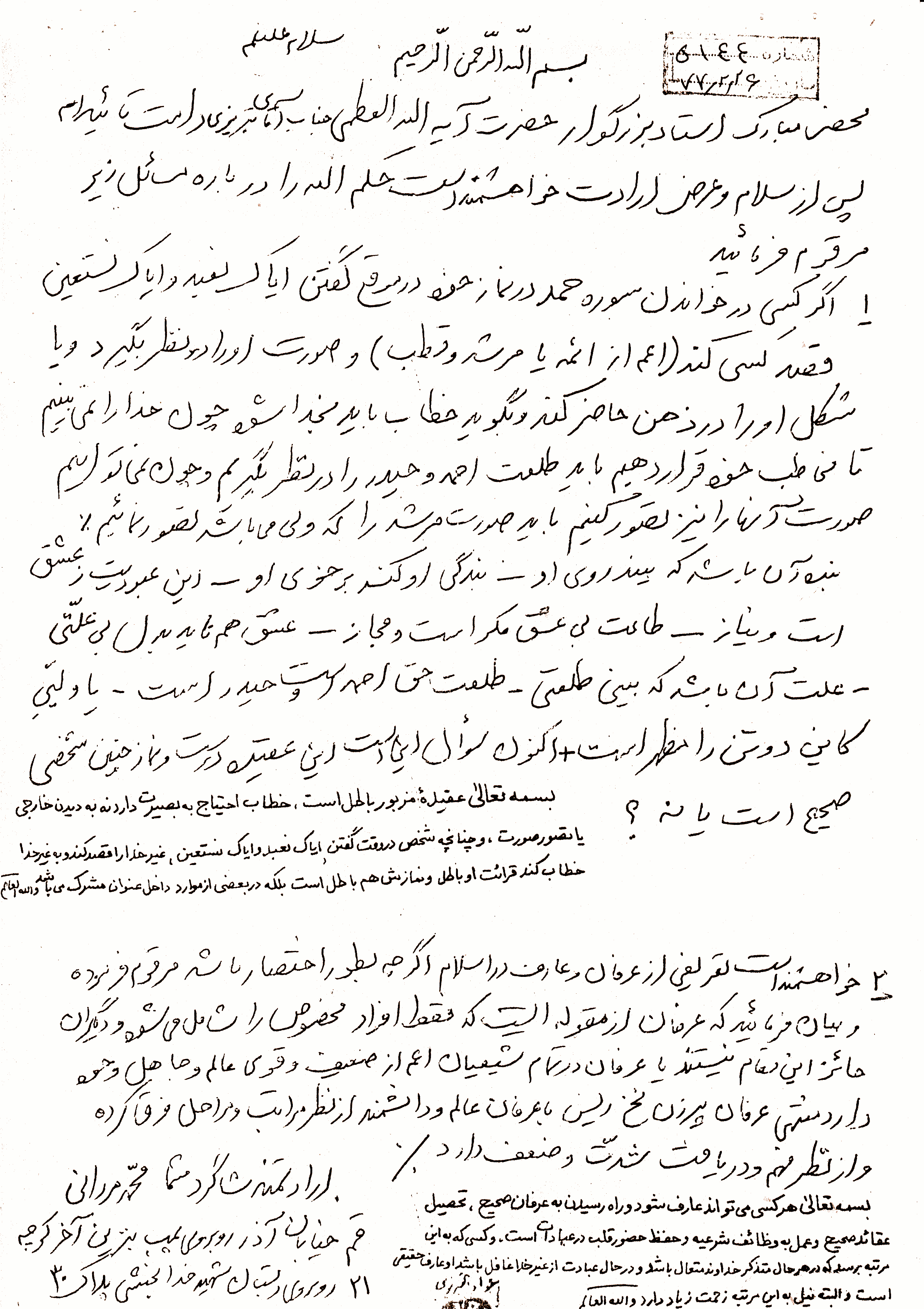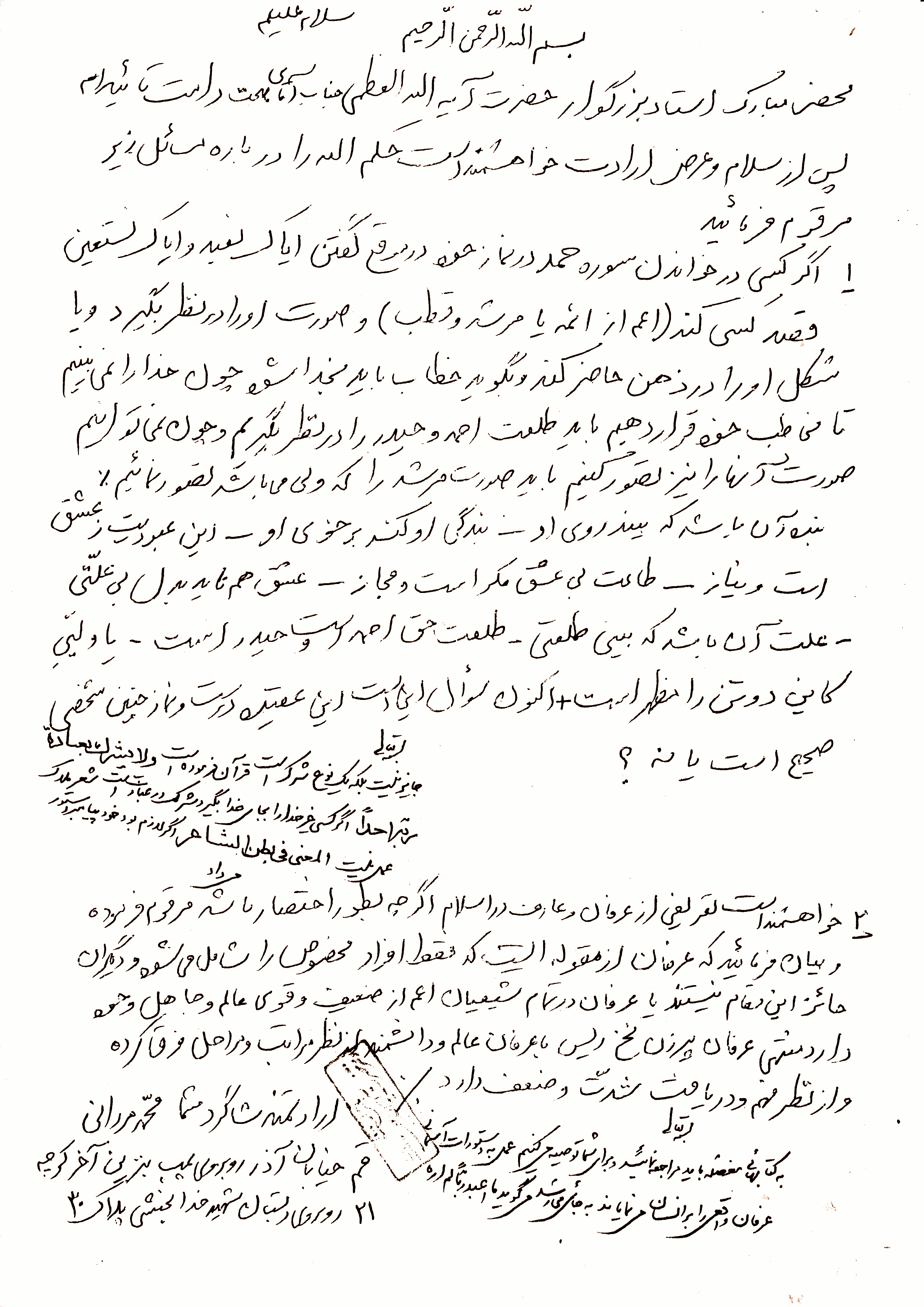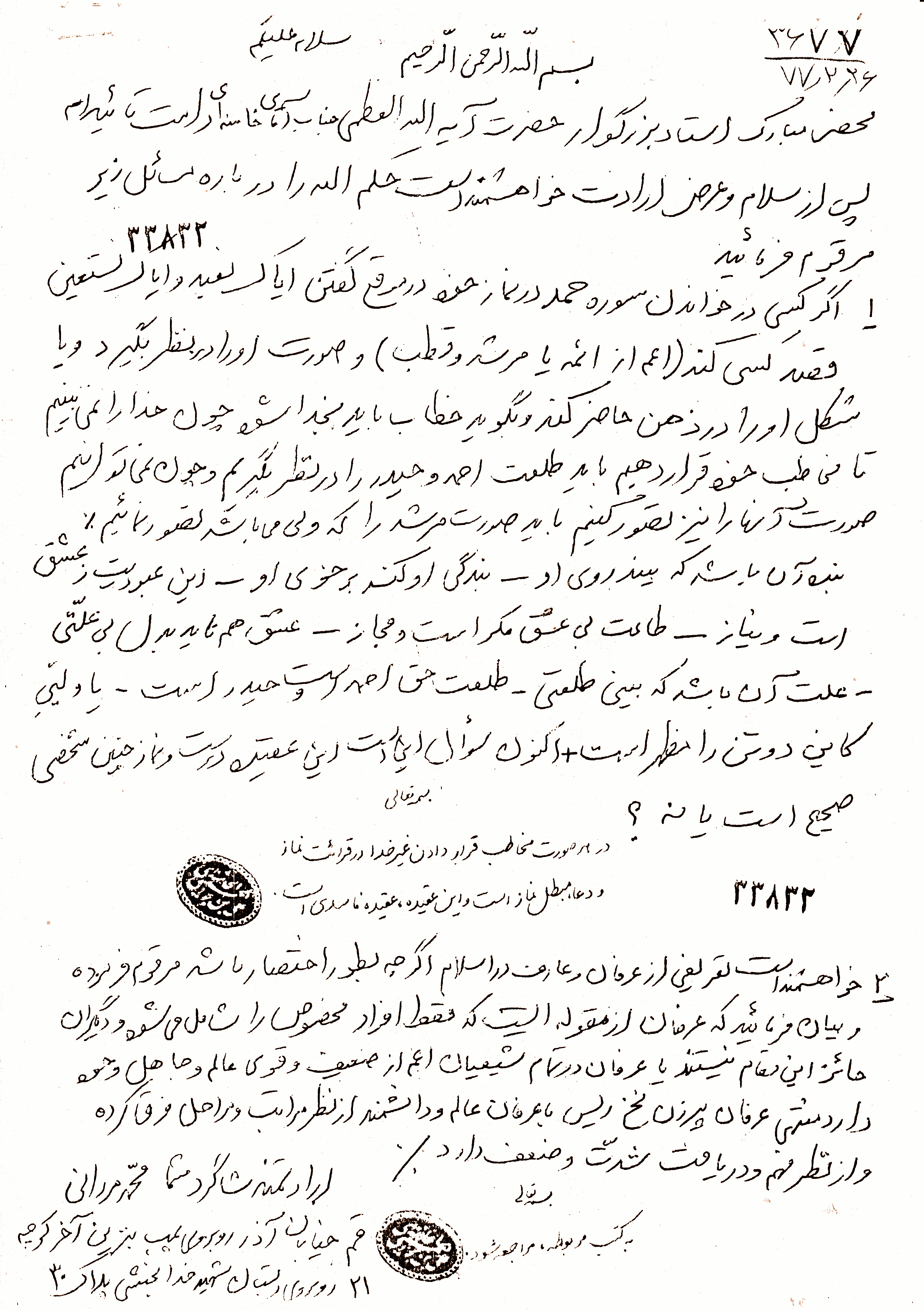رساله رفع شبهات، مسئله موضوع تمثل صورت امام، ص 21